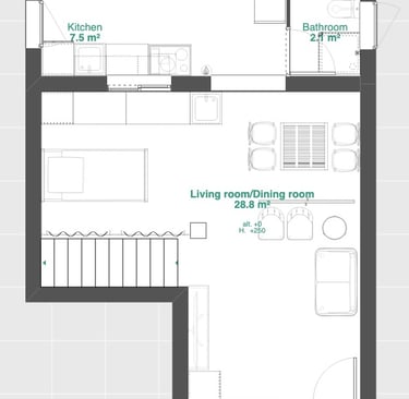 The kitchen and dining renovation successfully addressed the household's needs for functionality and aesthetics. By relocating the washroom to the backyard, we eliminated a major obstacle, enhancing the flow and usability of the space. The parallel kitchen design separated cooking and cleaning areas, ensuring cleanliness and ample movement space. Preserving the backyard allowed for natural light and ventilation, further improved by adding another window. This transformation resulted in a highly functional, visually appealing, and user-friendly kitchen and dining area that aligns with contemporary design standards and integrates smart technology for added convenience.