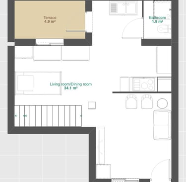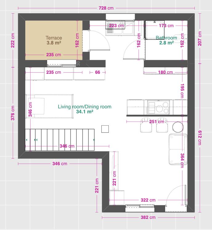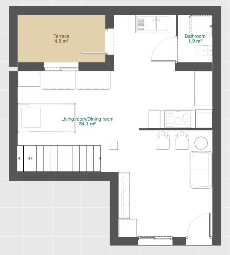 There is no room to accommodate a dining table.