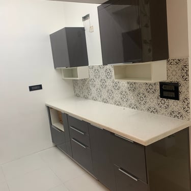 A parallel kitchen design was implemented, separating the cooking and cleaning areas to maintain cleanliness. This layout also provides ample space for the user to move around and complete the cooking process freely.