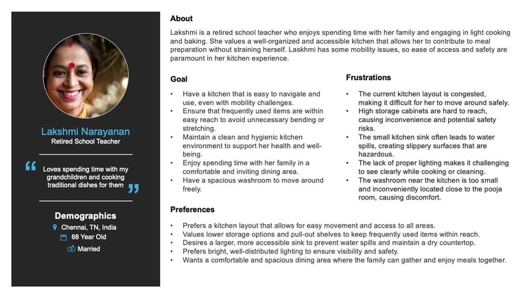 Conducted user interviews with the house owners, their children, and elderly parents. Each family member shared their pain points and experiences with the current kitchen and dining area, providing valuable insights on how the new kitchen can be improved